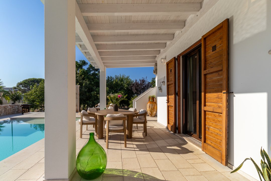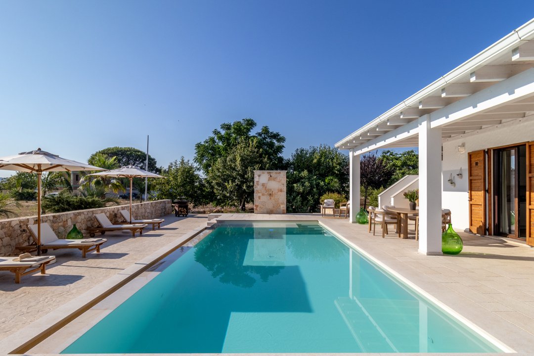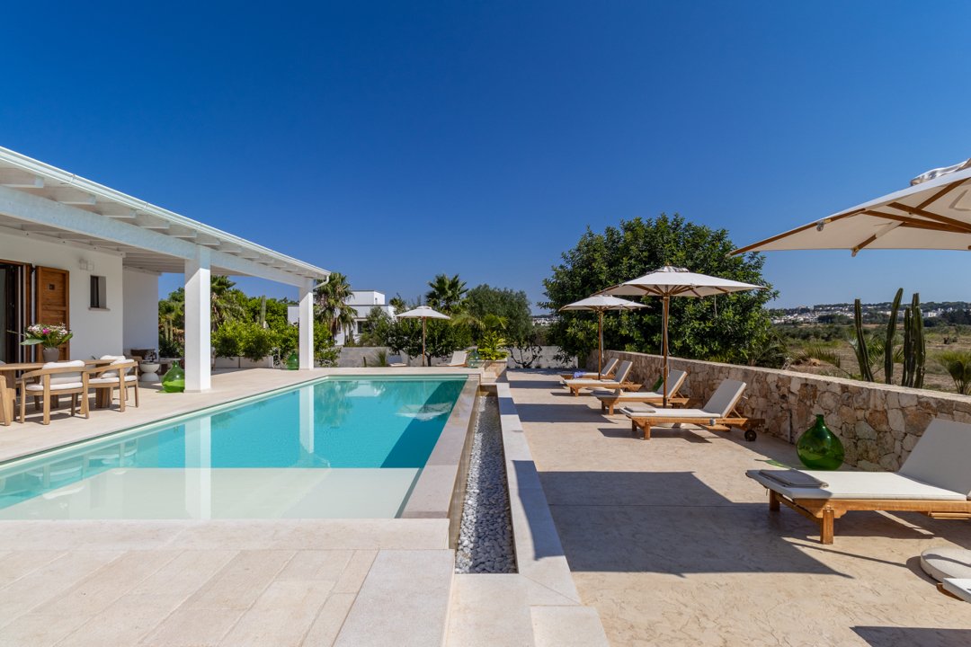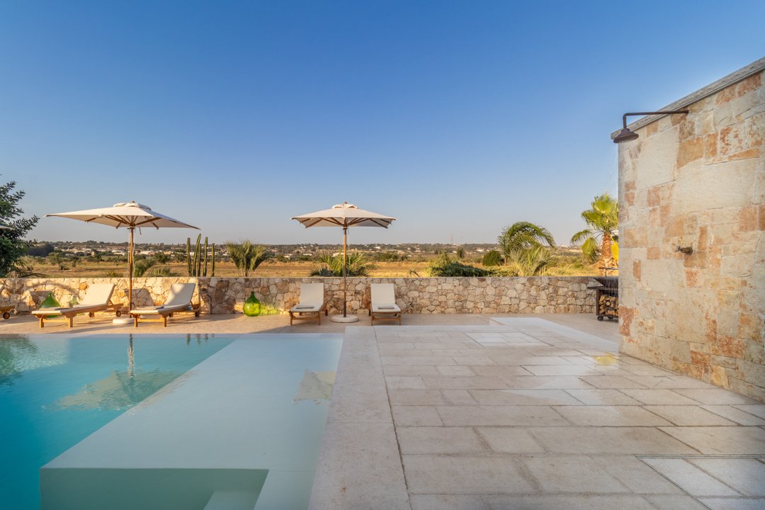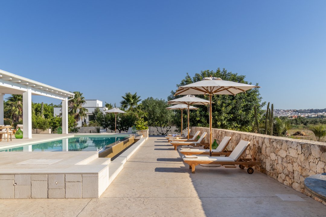 Villa Denu Salento è situata nella bellissima campagna di Parabita, nel cuore del Salento, a soli 10 minuti dalle splendide spiagge di Gallipoli. La proprietà manifesta il suo fascino in una recente costruzione dal design antico ben miscelato con elementi tipici della tradizione architettonica pugliese, che le donano un forte richiamo territoriale. Il suo caratteristico e imponente ingresso circolare a pietra a vista, introduce nella incantevole area living dove affascina la sua maestosa volta a botte, rifinita con la freschezza degli elementi d'arredo e i materiali eleganti ed essenziali che esaltano i colori tenui della pietra salentina, dove si ha anche accesso alle ben 4 camere da letto matrimoniali, tutte dotate di bagno in camera, caratterizzate da arredi minimalisti e lineari. Un nuovo progetto, curato nei minimi dettagli, ha dato vita a questa dimora perfettamente integrata nell'ambiente circostante, realizzando una splendida piscina a sfioro infinity di forma rettangolare, curata con estrema attenzione ai dettagli, che combina l'eleganza della natura con il fascino della pavimentazione in "pietra di apricena" che incorniciano parte del perimetro della stessa, la cui acqua turchese cristallina invita al totale relax. Inoltre, è stata realizzata anche una moderna e luminosa cucina e zona pranzo con vista sulla piscina, che si apre attraversando la porta laterale del living. Lo spazio esterno, impreziosito da un massiccio pergolato arredato con gusto, offre n ambiente ideale per rilassarsi o trascorrere momenti conviviali all'aperto. Inoltre, rappresenta la soluzione ideale per pranzi e cene al fresco, corredato da uno spettacolare barbecue di design, regalano un'esperienza autentica e ricercata. Questo luogo è oggi una meta ideale per una confortevole e rilassante vacanza rigenerante a contatto con la natura. La sua posizione strategica permette di raggiungere facilmente l'entroterra, degustando i famosi piatti tipici presso le numerose sagre nei paesi limitrofi, rendendola una scelta ideale per un soggiorno indimenticabile!