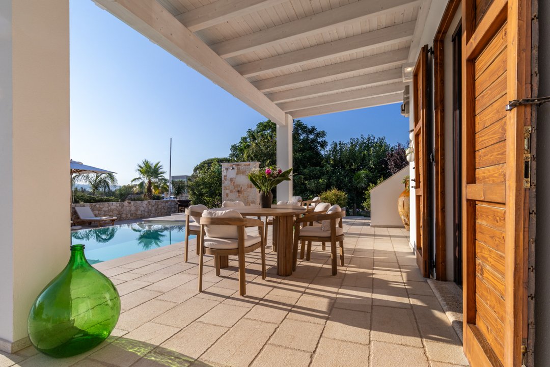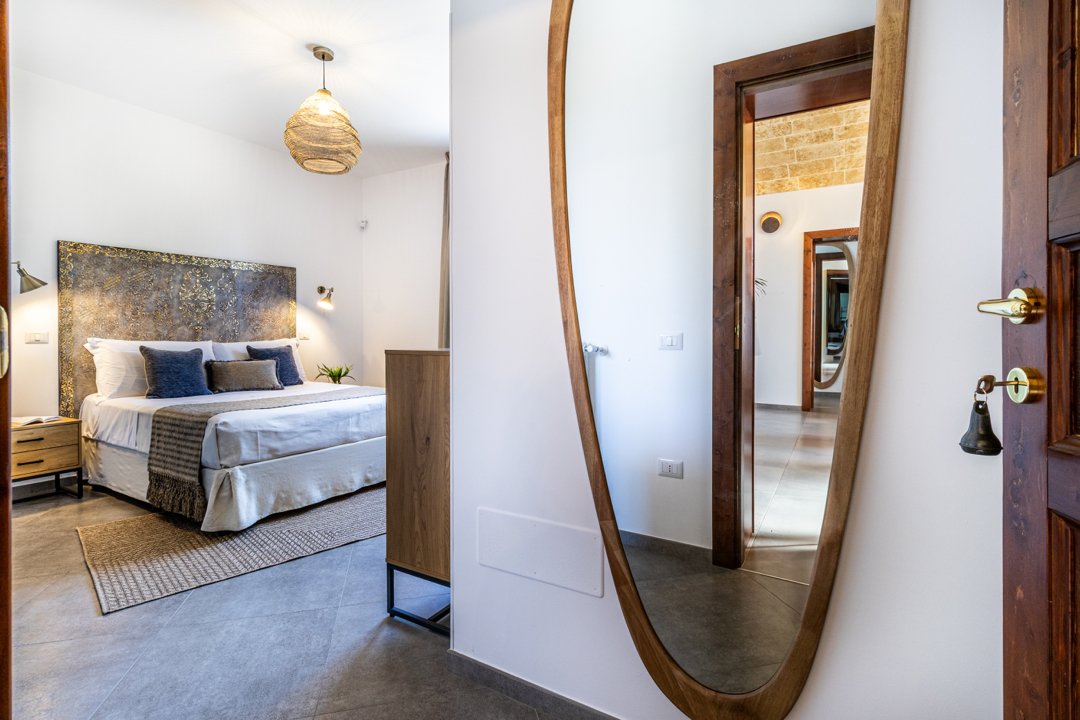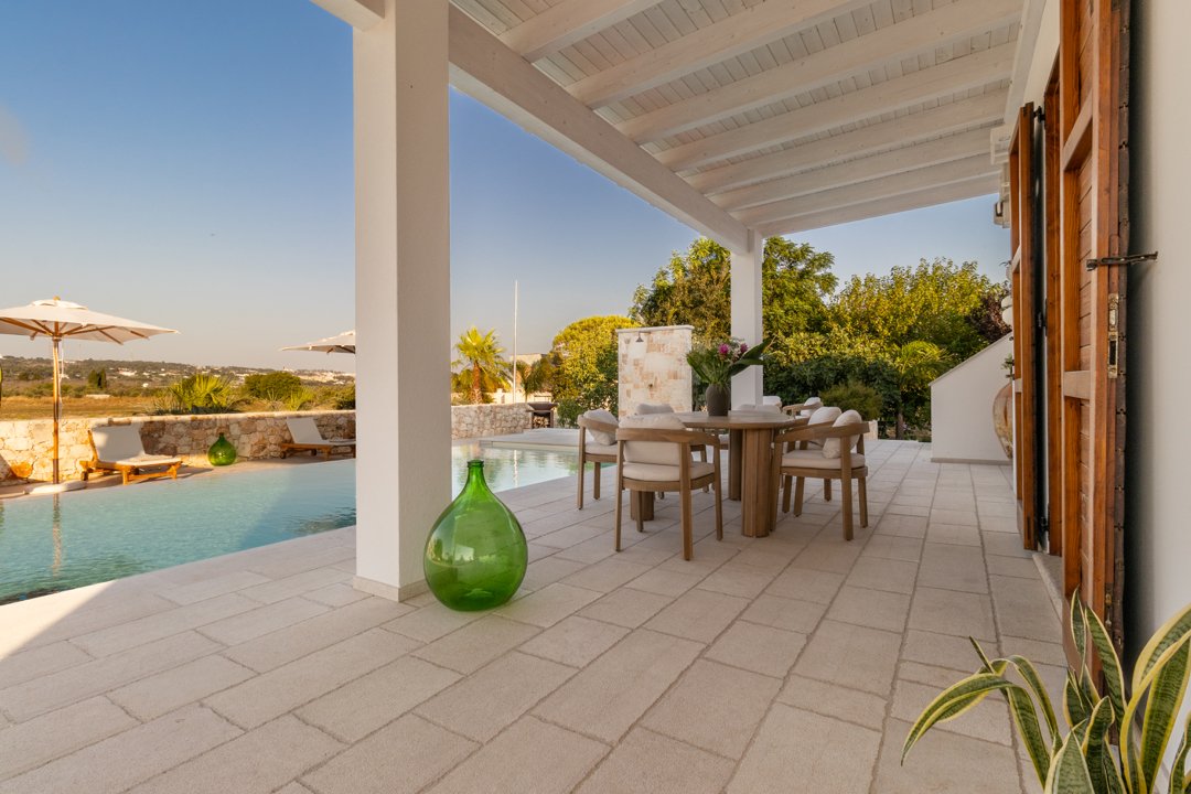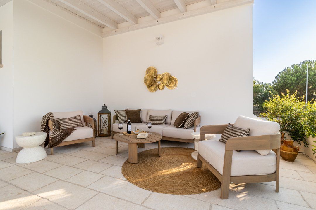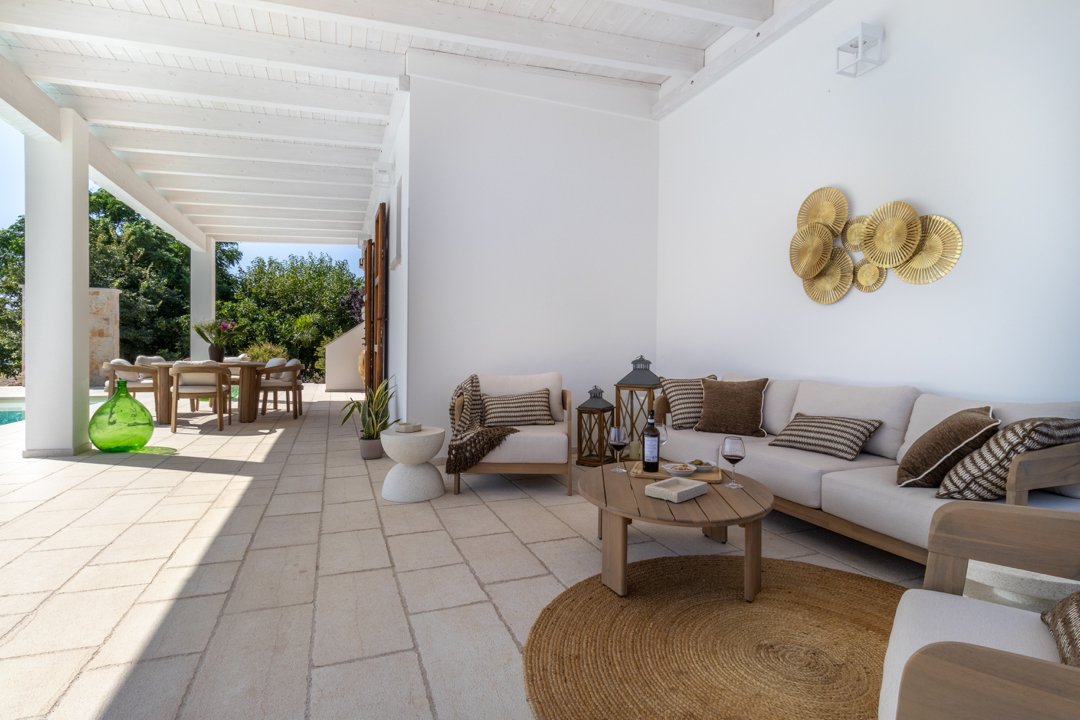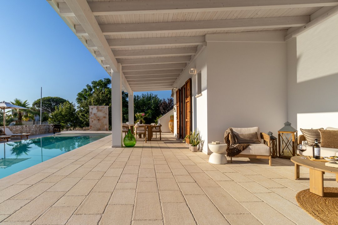 Villa Denu Salento è situata nella bellissima campagna di Parabita, nel cuore del Salento, a soli 10 minuti dalle splendide spiagge di Gallipoli. La proprietà manifesta il suo fascino in una recente costruzione dal design antico ben miscelato con elementi tipici della tradizione architettonica pugliese, che le donano un forte richiamo territoriale. Il suo caratteristico e imponente ingresso circolare a pietra a vista, introduce nella incantevole area living dove affascina la sua maestosa volta a botte, rifinita con la freschezza degli elementi d'arredo e i materiali eleganti ed essenziali che esaltano i colori tenui della pietra salentina, dove si ha anche accesso alle ben 4 camere da letto matrimoniali, tutte dotate di bagno in camera, caratterizzate da arredi minimalisti e lineari. Un nuovo progetto, curato nei minimi dettagli, ha dato vita a questa dimora perfettamente integrata nell'ambiente circostante, realizzando una splendida piscina a sfioro infinity di forma rettangolare, curata con estrema attenzione ai dettagli, che combina l'eleganza della natura con il fascino della pavimentazione in "pietra di apricena" che incorniciano parte del perimetro della stessa, la cui acqua turchese cristallina invita al totale relax. Inoltre, è stata realizzata anche una moderna e luminosa cucina e zona pranzo con vista sulla piscina, che si apre attraversando la porta laterale del living. Lo spazio esterno, impreziosito da un massiccio pergolato arredato con gusto, offre n ambiente ideale per rilassarsi o trascorrere momenti conviviali all'aperto. Inoltre, rappresenta la soluzione ideale per pranzi e cene al fresco, corredato da uno spettacolare barbecue di design, regalano un'esperienza autentica e ricercata. Questo luogo è oggi una meta ideale per una confortevole e rilassante vacanza rigenerante a contatto con la natura. La sua posizione strategica permette di raggiungere facilmente l'entroterra, degustando i famosi piatti tipici presso le numerose sagre nei paesi limitrofi, rendendola una scelta ideale per un soggiorno indimenticabile!